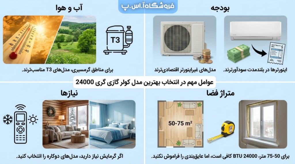 عوامل مهم در انتخاب بهترین مدل کولر گازی گری 24000