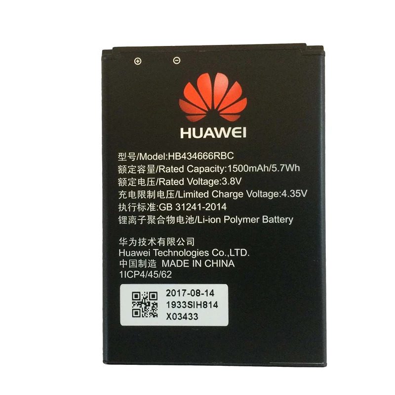 مشخصات، قیمت و خرید باتری مدل HB434666RBC مناسب مودم 4G قابل حمل هوآوی Huawei E5573 /E5577 بسیار با کیفت و استاندارد میباشد. ولتاژ این باتری 3.8 ولت و ظرفیت آن 1500 میلی آمپر ساعت میباشد.