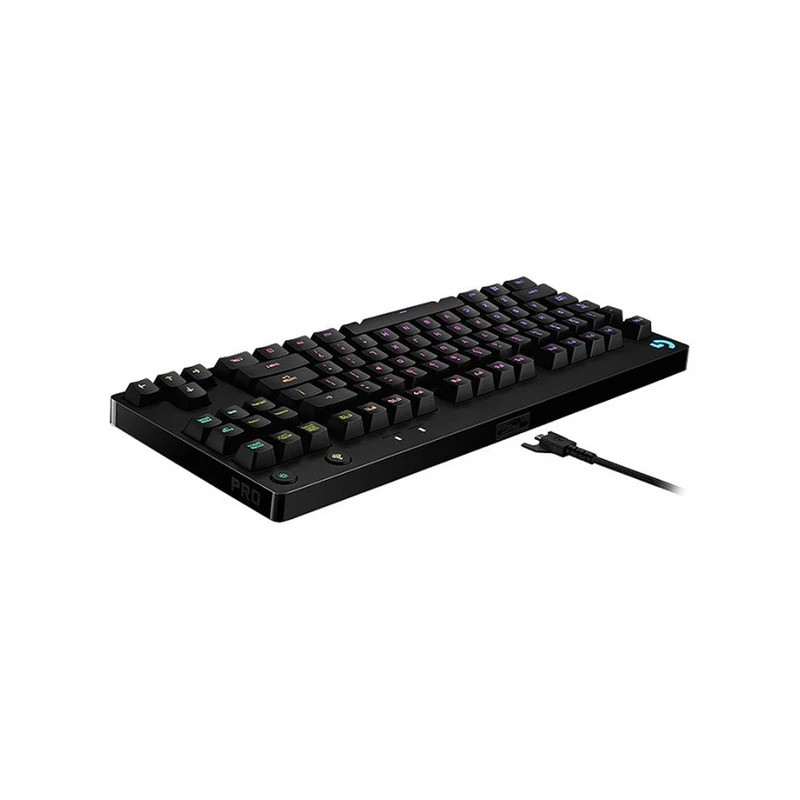 کیبورد مخصوص بازی لاجیتک مدلLogitech G Pro: کیبورد مخصوص بازی «G Pro» شرکت «لاجیتک» (Logitech) کیبوردی مکانیکی و از محصولات موردپسند گیمرهاست. طرفداران بازیهای رایانهای همواره به دنبال تهیه بهترین محصولات برای داشتن تجربهای متفاوت از انجام بازیهای رایانهای هستند. قوت این کیبورد در نورپردازی دقیق و زیبای کلیدهای آن است. شما میتوانید برای تکتک کلیدهای کیبورد، یک نور پسزمینهی خاص تعریف کنید تا هم پیداکردن کلیدها به پروسهی راحتتر و سریعتری تبدیل شود و هم کیبوردتان ظاهر جذابتری به خود بگیرد. حق انتخابی که برای تعیین رنگ پسزمینهی کلیدها در اختیار دارید، به گستردگی 16 میلیون رنگ است. این کیبورد با ویندوز (Windows) نسخههای 7،8 و 10 کاملاً سازگار است و بابت ناهماهنگی سختافزار و سیستمعامل مشکلی را تجربه نخواهید کرد. G Pro یک محصول با کیفیت ساخت بالاست که انجام هر نوع بازی با وجود چنین کیبوردی دلچسبتر میشود. این محصول از طریق کابل USB به کامپیوتر شما متصل شده و برق مورد نیاز خود را از همین طریق دریافت میکند.