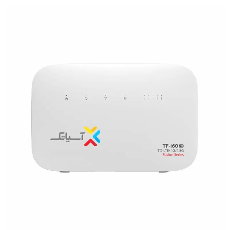مودم 4G/4.5G/TD-LTE آسیاتک مدل TF-i60 H1 محصولی از برند «آسیاتک » (Irancell) است. آسیاتک در جایگاه یک شرکت مخابراتی و به نمایندگی برند «هوآوی» (Huawei) این مودم را در ایران عرضه کرده است. مودم TF-i60 H1 میتواند از شبکههای نسل 4 و 4.5 تلفن همراه پشتیبانی کند و میتوان از سیمکارتهای معمولی (FD) و TD-LTE در آن بهره گرفت. یک پورت WAN در این مودم وجود دارد که امکان دریافت اینترنت از دستگاههای دیگر و به اشتراکگذاری آن از طریق شبکهی بیسیم TF-i60 H1 را امکانپذیر میکند. پشتیبانی همزمان از 4 عدد SSID از قابلیتهای بسیار خوب این دستگاه است.
