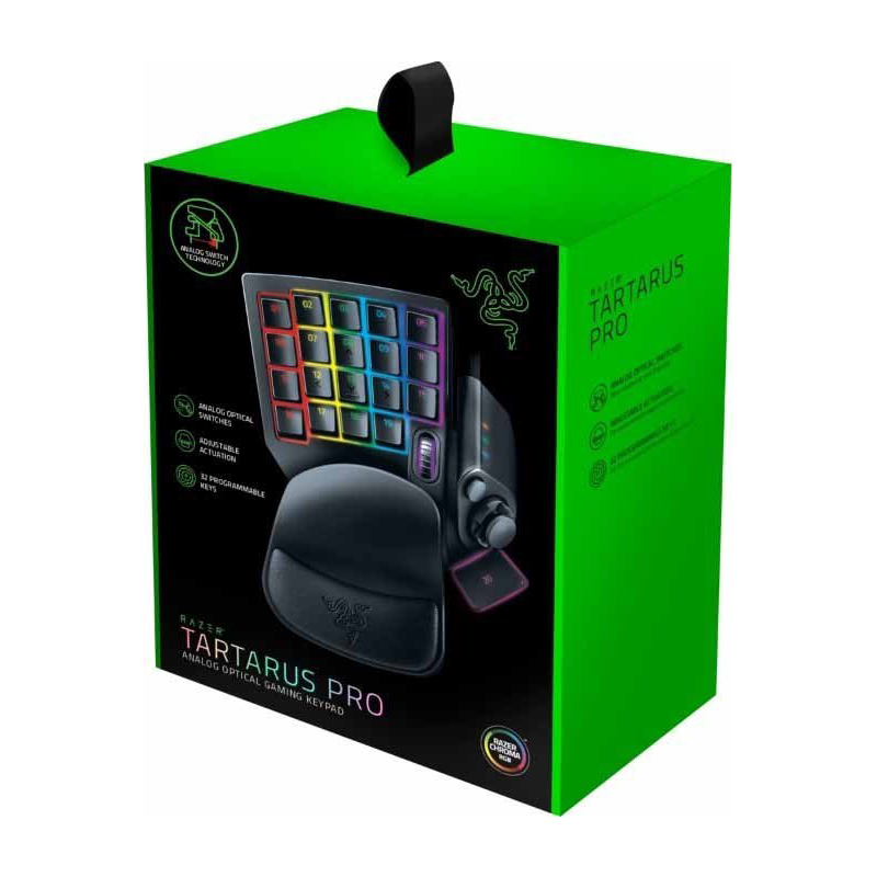 گیمپد/کیپد Razer Tartarus Pro توسط برند محبوب گیمینگ Razer عرضه شده است تا تجربهای متفاوت از کیبورد و کنترلر را برای گیمرهای PC فراهم کند. این وسیله بهخصوص برای گیمرهایی که زمانیکه میخواهند ترکیب راحتی کنترلر با دقت کیبورد را داشته باشند، طراحی شده است.Tartarus Pro با ۳۲ دکمه کاملاً برنامهپذیر، پد هشتجهته (thumb-pad) و قابلیت تنظیمات بسیار گسترده — هم از نظر نرمافزاری و هم سختافزاری — آمده تا شما را از کیبورد کامل یا کنترلر بینیاز کند.