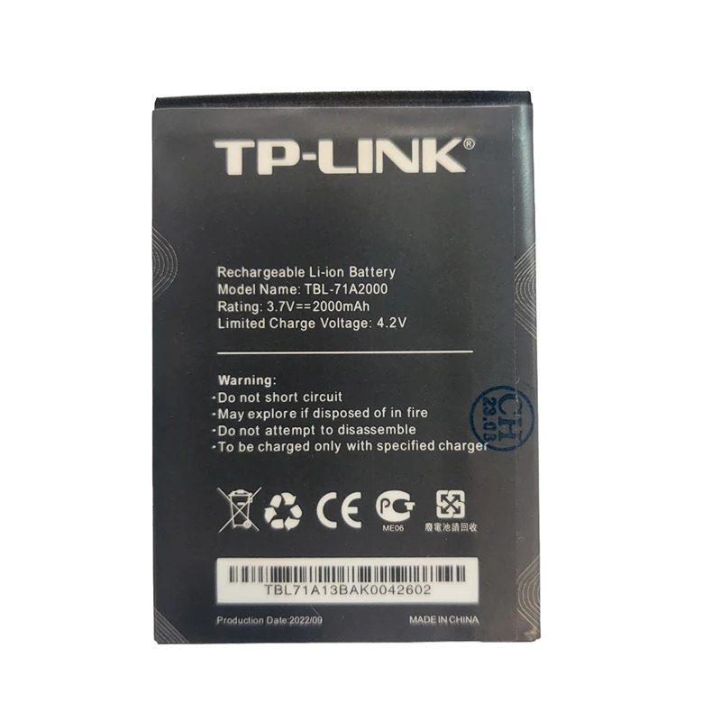 مشخصات، قیمت و خرید باتری مدل TBL-71A2000 مناسب مودم قابل حمل تی پی لینک M7200/M7300/M7000/M5250/M5350 بسیار با کیفت و استاندارد میباشد. ولتاژ باتری مدل TBL-71A2000 مناسب مودم قابل حمل تی پی لینک 3.7 ولت و ظرفیت آن 2000 میلی آمپر ساعت میباشد.
