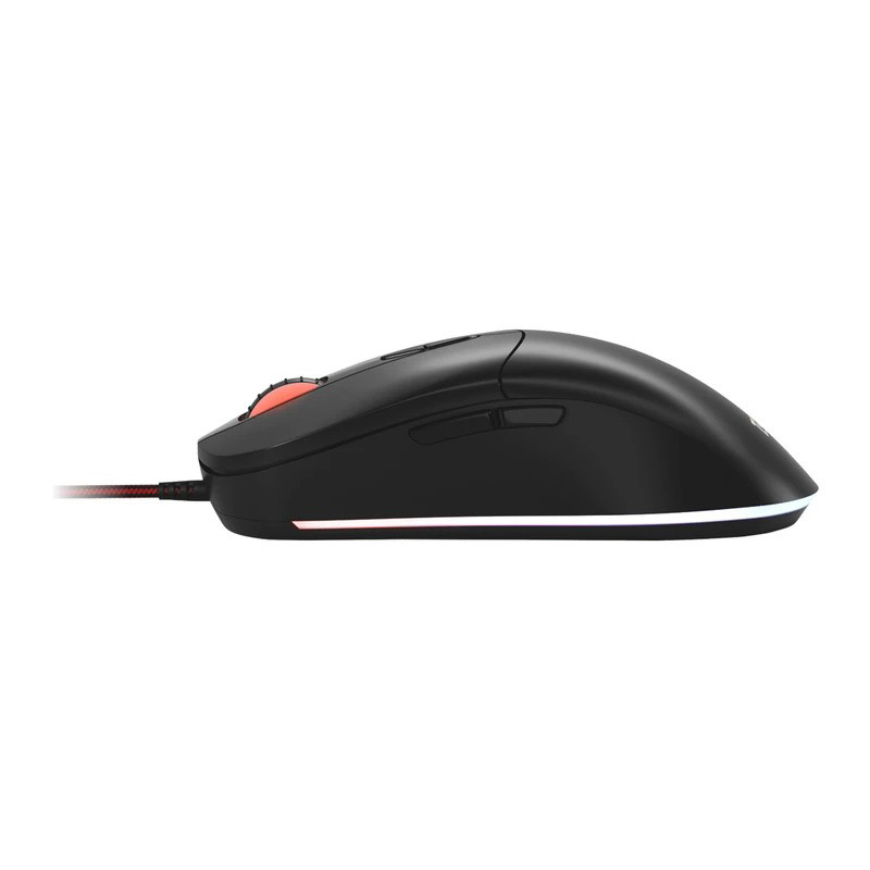 ماوس سیم دار گیمینگ تسکو مدل TSCO TM-766GA با ابعاد 115×63×29 میلیمتر و وزن 110 گرم طراحی شده است که در کنار طراحی ارگونومیک، استفاده از این موس را حتی در ساعات طولانی بدون خستگی فراهم میسازد. جنس بدنه از پلاستیک ABS با کیفیت ساخته شده که نه تنها مقاومت بالایی در برابر ضربه و خراشیدگی دارد، بلکه به دلیل طراحی شیک و رنگ مشکی جذاب، ظاهری حرفهای و مدرن به میز کار شما میبخشد. ماوس TM 766 GA با استفاده از کانکتور USB A به دستگاههای مختلف متصل میشود. طول کابل 1.8 متری این موس، که از جنس پنبه بافتهشده ساخته شده است، انعطافپذیری و دوام بالایی را به همراه دارد. این طول کابل نه تنها فضای کاری بیشتری را در اختیار کاربر قرار میدهد، بلکه از گره خوردن و آسیب به کابل جلوگیری میکند یکی از مهمترین قابلیتهای موس TM 766 GA، امکان تنظیم DPI است. این ماوس به طور پیشفرض دارای 1200 DPI است اما با فشردن کلید تنظیم DPI، کاربر میتواند دقت موس را به 2400، 4800 و حتی 7200 DPI تغییر دهد. این ویژگی بهخصوص برای گیمرها و کاربران حرفهای که نیاز به دقت و سرعت بالاتری دارند، بسیار کارآمد است. ماوس TM 766 GA به 7 کلید مجزا مجهز است که دو کلید آن در کنار موس تعبیه شدهاند و برای اجرای دستورات مختلف به کار میروند. این کلیدها با قابلیت تحمل 3 میلیون بار کلیک، تضمینی بر طول عمر و کارایی بلندمدت این محصول هستند. طراحی هوشمندانه و جایگذاری مناسب این کلیدها، تجربه کاری را به مراتب راحتتر و سریعتر میکند. نورپردازی LED در ماوس TM 766 GA نه تنها به زیبایی ظاهری آن افزوده، بلکه به عنوان یک نشانه بصری در محیطهای کمنور نیز عمل میکند. این نورپردازی در حین کار، جلوهای خاص به موس میدهد و میتواند تجربه کاربری را به سطح جدیدی ارتقاء دهد.